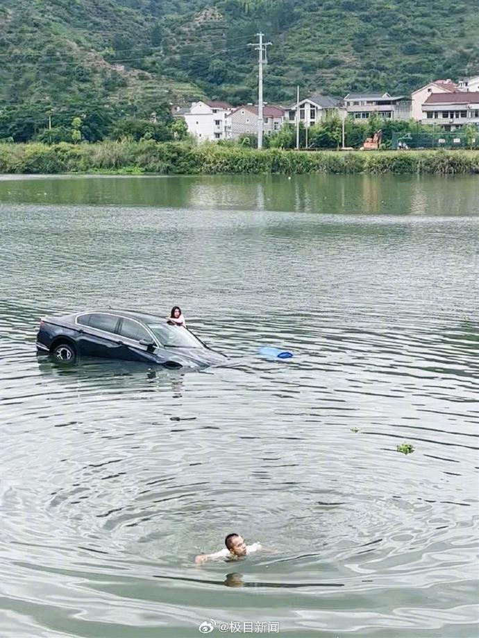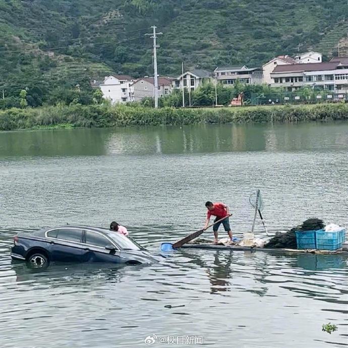 【浙江丽水一轿车落水,女子被困车顶男子下水求救,村民驾竹筏救人】8月3日上午8时许,在浙江丽水莲都区湾岙村,一对男女驾驶一辆黑色轿车坠入二十多米深的南明湖中,女子被困车顶,男子会游泳,下水试图求救。