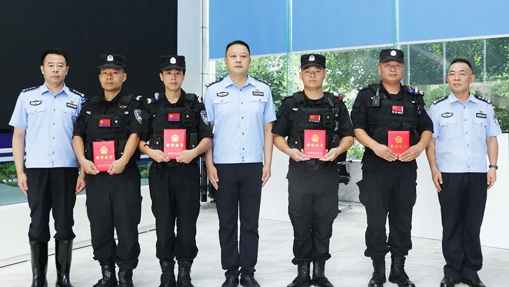 在古蔺县公安局联勤警务站,刘纲为在齐胸洪流中救起被困小孩的辅警康安友和3名在救援工作中表现突出的同志,颁发了市局战时奖励证书。