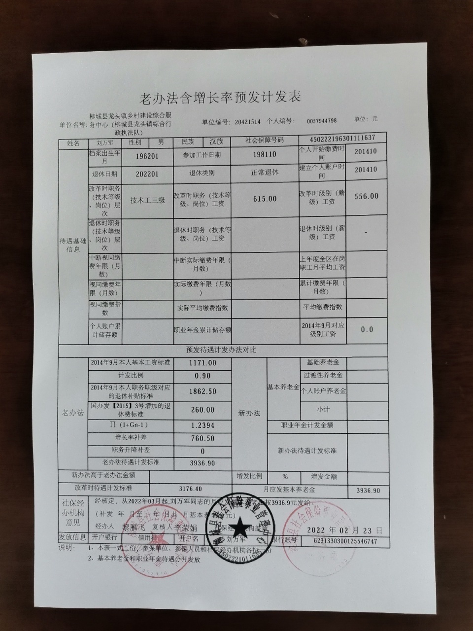 《老办法含增长率预发计发表》。图/刘万军提供