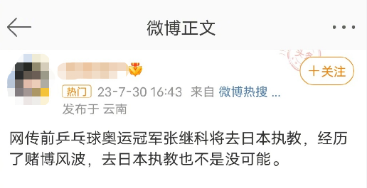 有自媒体宣称@张继科 将执教日本,引发热议。