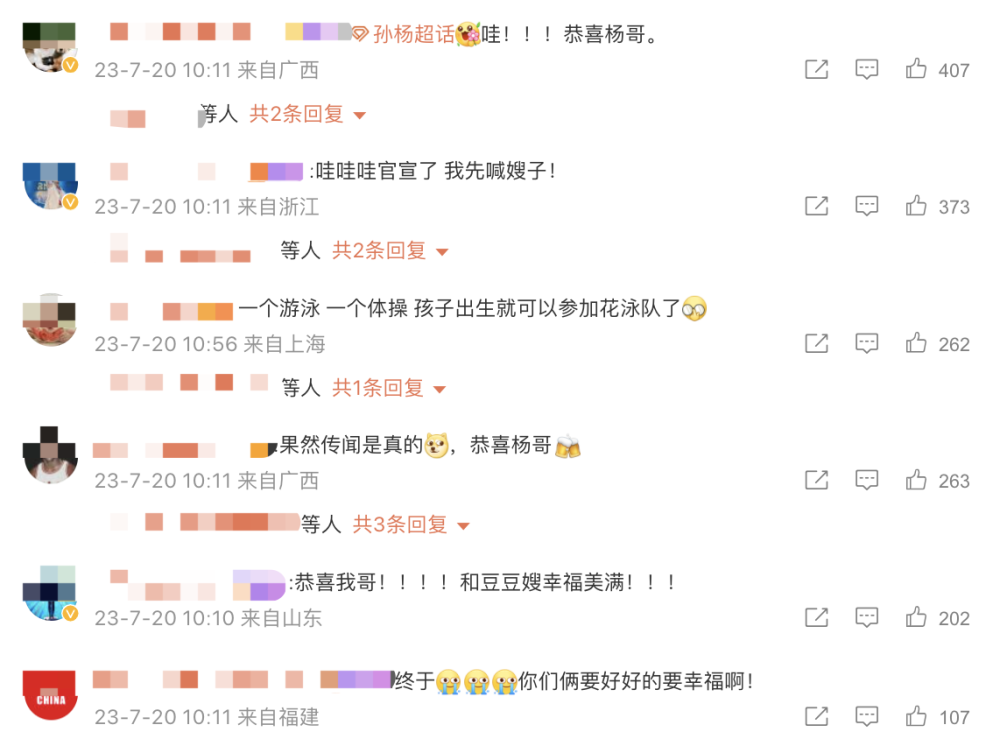 评论区里全是祝福声,可见大家都非常看好孙杨和张豆豆。还有网友笑称两人的孩子可以参加花样游泳。