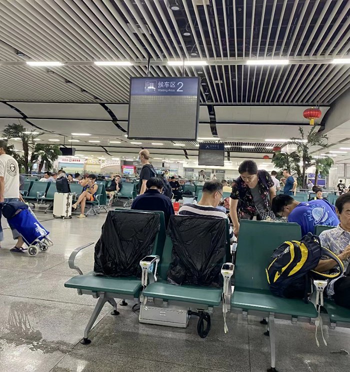 但火车站内仍出现短暂旅客滞留情况。据南方都市报9月8日上午报道,当时火车站内滞留百人左右,现场工作人员针对旅客退票、改签、购票等需求组织售票厅增开退票窗口,调用应急储备物资1500份,必要时候提供给旅客。