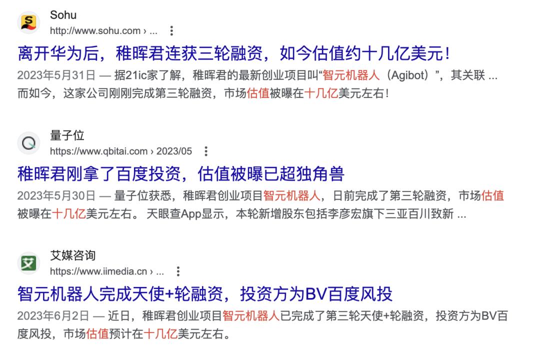 光是这半年多的时间,稚晖君的智元机器人就已经拿到了百度、经纬创投等明星创投机构的钱,十几亿美元的市场估值更是高得吓人。