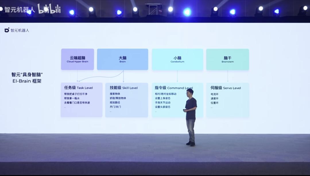 这个框架主要包括云端超脑、大脑、小脑以及脑干,分别对应着任务级、技能级、指令级和伺服级四个层级。