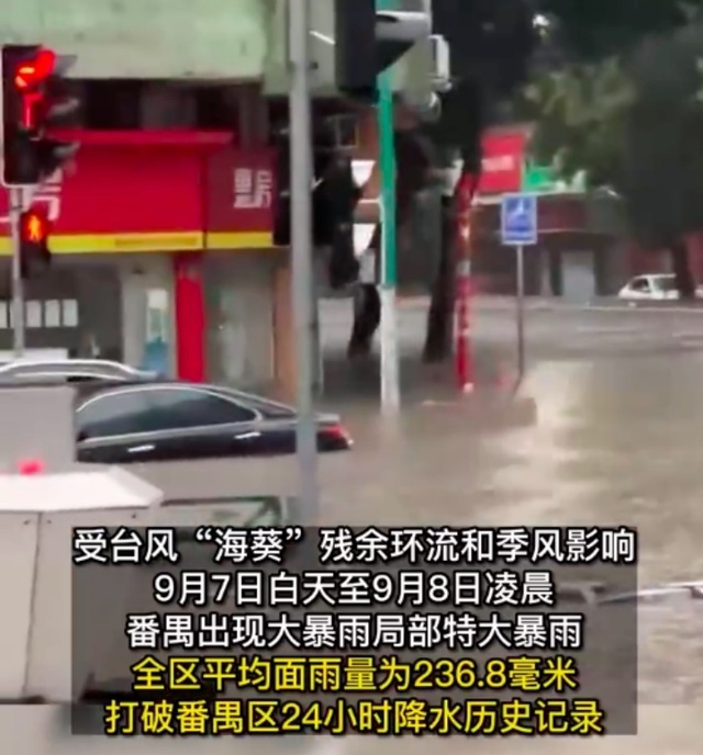 据广州日报消息,9月7日白天至9月8日凌晨番禺出现大暴雨局部特大暴雨。本次降水过程持续时间长、降水范围广、降水极端性强、夜雨明显。全区平均面雨量为236.8毫米,南村镇梅山村录得最大降水量370.5毫米,均打破番禺区24小时降水历史记录。